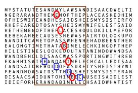 Rips obtuvo en el computador una línea continua de 304.805 letras hebreas, que son todas las letras de la Torah, considerada la forma original en la que Moisés recibió el Sagrado Libro. El programa permite explorar esta línea en busca de nombres, hechos; en fin, lo que uno quiera buscar, verificando desde la primera letra todas las secuencias alternas posibles, dando palabras por saltos de uno a miles de espacios entre letras, repitiendo la secuencia comenzando por la segunda letra encontrada, hasta formar el nombre, palabra o frase solicitado al programa, pudiendo también ser fechas, dado que cada letra hebrea es un número a la vez. Encontrada la palabra el computador puede buscar palabras relacionadas, dando una matriz específica en hileras de letras con «n» números de letras para cada hilera. Es decir confecciona un crucigrama para cada consulta realizada. En ese crucigrama se lee el nombre buscado, el que está cruzado por palabras en sentido horizontal, diagonal o vertical, que dan la característica al dato solicitado al programa. En el sentido vertical, diagonal u horizontal, ya sea de adelante hacia atrás o viceversa, y encriptado cerca de la palabra encontrada, aparecen otras palabras que entregan el mensaje codificado de la Biblia para ese nombre, suceso, fecha, etc. Cada referencia consultada muestra palabras o frases que caracterizan a esa referencia, y lo hace el código de manera sorprendente por su simpleza y exactitud. A manera de ejemplo se puede ver: