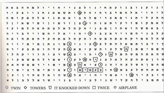 Montones de personajes conocidos de todo tipo han sido encontrados, con sus nombres en la matriz de crucigrama de letras hebreas, nombres cruzados y relacionados con una serie de palabras y frases específicas para cada personaje. Cinco hechos impactaron a Rips y Drosnin, dado que ellos fueron encontrados antes de suceder: