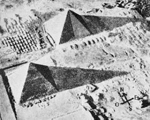 Fue una sorprendente fotografía de las pirámides de Guiza realizada por un avión de la Royal Air Force (RAF) británica (oficialmente realizada el 21 de marzo, equinoccio de primavera en el hemisferio norte, a la 18:00 horas de 1934), la que refrendó la hipótesis de Pochan al mostrar claramente como la cara sur de la pirámide de Keops, no así la de Kefrén, situada al lado, se dividía en dos triángulos menores, uno iluminado por el sol y el otro a oscuras.