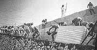 Por los restos encontrados en la «Gran Pirámide» hubieron de utilizar dos rampas para manipular los bloques de piedra.