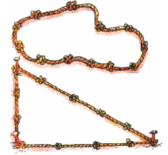los agrimensores y constructores de pirámides trazaban líneas perpendiculares sobre el terreno, utilizando una cuerda de doce nudos equidistantes. Con este método dibujaban en el suelo triángulos rectángulos de lados 3, 4 y 5.
