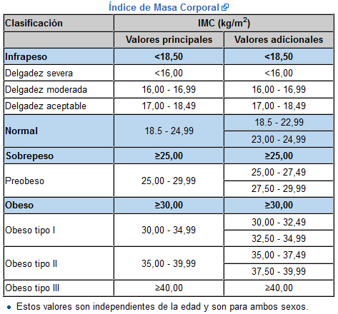 De acuerdo a este índice la OMS establece la siguiente clasificación (simplificada):