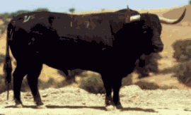 Con pasos lentos, seguros y marchosos y bamboleando un musculoso cuerpo de donde sobresale un masivo morrillo que soporta una testuz armada con una mortífera cornamenta (perfecta arma natural de defensa y ataque), el toro ibérico rodeado por un harén de vacas marcha tranquilo en el campo, como a sabiendas de que su genética bravura y las de sus compañeras, que pudiera haber causado su extinción, por el contrario se convirtió en la razón de la supervivencia de su especie.