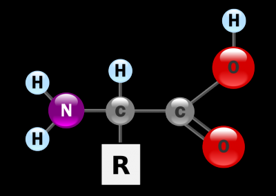 Los aminoácidos son las «piezas» que forman la molécula de una proteína. En la molécula proteínica, los aminoácidos muestran entre ellos uniones mediante enlaces químicos especiales, constituyendo, de esa manera, una larga cadena. Ésta no siempre presenta el mismo número de moléculas de aminoácidos, puede estar formada por algunos centenares y, si de lo contrario es muy larga, puede contar con varios miles; el número de moléculas de aminoácidos depende, en definitiva, del tipo de proteína que sea. En general suelen ser cadenas muy largas. Por esta razón, en casi todos los casos, la cadena se presenta enrollada, en forma de ovillo, aunque su estructura sigue un orden determinado. Este ovillo es, en realidad, la molécula de la proteína.