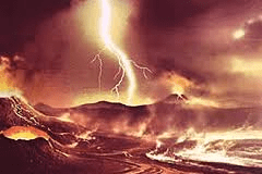 Aparecen pequeñas moléculas orgánicas en la atmósfera terrestre primitiva, por transformación de sus principales constituyentes, debido a la acción de numerosas fuentes de energía: la radiación ultravioleta solar y las descargas eléctricas generadas por las tormentas se reparten el protagonismo.
