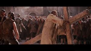 Camina entre la gente, con el cuerpo doblado bajo el madero, deslumbrado al doblar un recodo por el sol que le seca la sangre y le quema en las llagas. Van delante los soldados («¡Paso, paso!») blandiendo el bastón para apartar a desocupados, burlones y amigos.