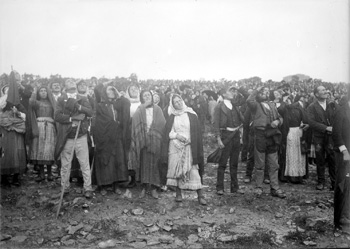 Una multitud rodeó a Lucía, a diferencia de la primera vez que apareció Nuestra Señora, dos meses antes. En aquella ocasión sólo estaban Lucía, Jacinta y Francisco en los campos, cuidando de las ovejas de la familia. Sus primos tenían siete y nueve años respectivamente.