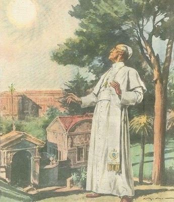 Como se sabe, el venerable Pío XII fue gratificado en vida con dos manifestaciones sobrenaturales: la visión del milagro del sol que había tenido lugar en Fátima en 1.917 reproducido en los jardines vaticanos y la aparición de Nuestro Señor durante su grave enfermedad de 1.954 (su encuentro con los extraterrestres es harina de otro costal).